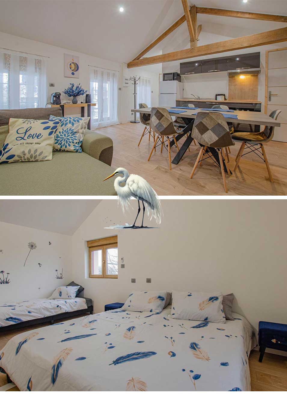 Gîte mitoyen situé à l'étage d'une fermette rénovée. Afin de faciliter votre séjour, les lits seront faits à l'arrivée, le ménage de fin de séjour ainsi que les charges (chauffage/électricité) seront compris dans le prix.